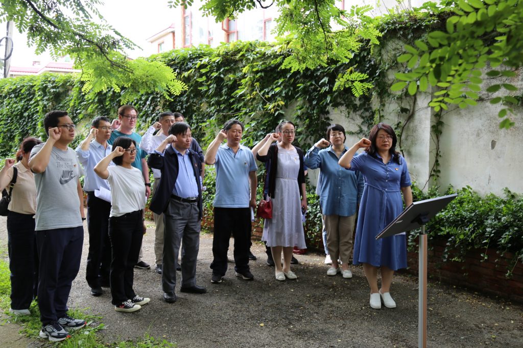 随后大家参观楸木园校区,见证了老一辈西林人初创学校的艰辛和不懈奋斗的精神。彭志远副董事长提出了如何再充分利用楸木园老校区的设想和建议。参观结束后全体教师党员怀着景仰的心情重温了入党誓词。