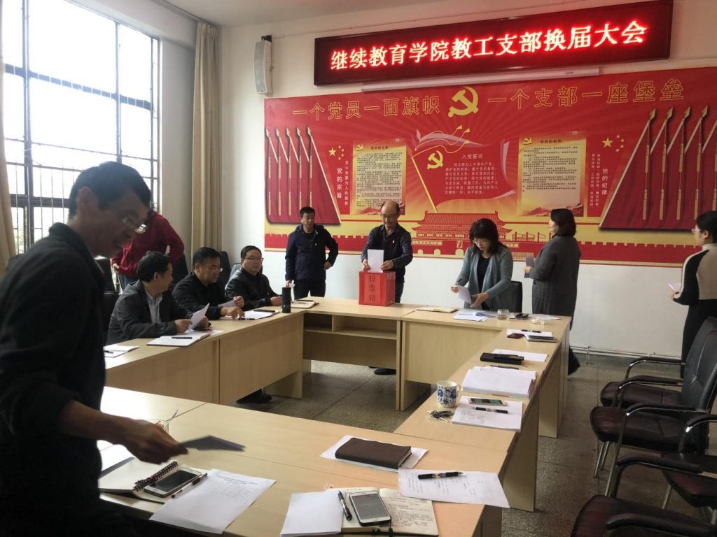10月28日上午,suncitygroup太阳集团网站教工支部在党员活动室召开支部大会,讨论并选举教工支部新一届支部委员。原教工支部书记代表上一届教工支委向大会作了工作报告,并主持了换届工作。