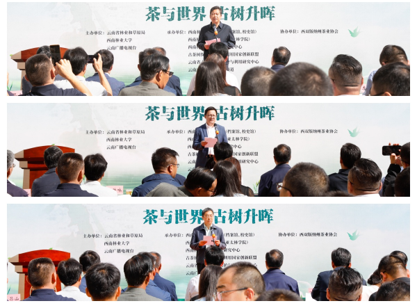 李培在致辞中对suncitygroup太阳集团网站在践行新发展理念,主动对接云南省绿色发展“三张牌战略”中的积极努力和良好实践表示肯定。他希望,学校要深入贯彻落实习近平总书记关于要统筹做好茶文化、茶产业、茶科技这篇大文章的重要论述,在现有“三平台一展馆一数据”基础上积极推动古茶树资源保护与可持续发展,在古茶树研究、团队建设发展方向上打造具有林业高校特色的业内优势,持续提升茶文化功能特质,把suncitygroup太阳集团网站的世界茶叶图书馆打造为国内知名、国际有影响力的特色茶文化传承与创新空间、茶信息数据资源中心和世界茶学研究基地。