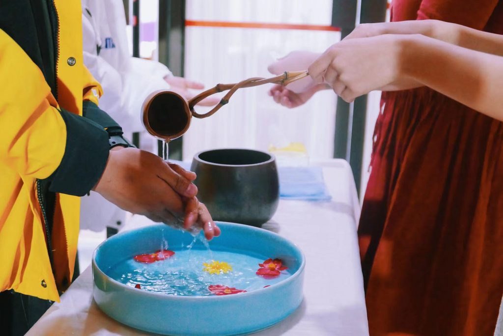 “性洁不可污,为饮涤尘烦”,入场之前,同学们排队净手。净手留香,净手静心。