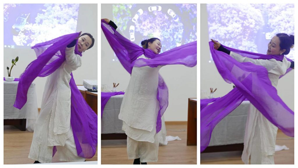 随后茶叶爱好者段燕子老师为大家带来一段衣袂飘飘,轻盈优美的蓝花楹舞蹈。