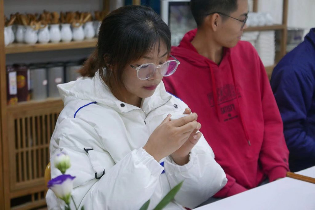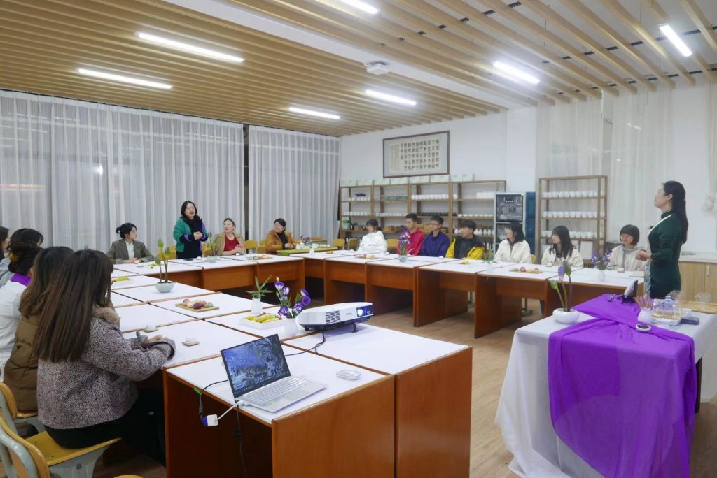 随着改革开放以来的迅猛发展,我们的社会生活也变得越加丰富多彩,茶作为一种文化现象逐渐走向世界。其中茶文化中的美学功能对培养老员工的审美有积极的引导作用,为让同学们更好的感受和学习中国传统茶文化,公司于2021年10月17日在茶艺教室举办了“蓝花楹品鉴”申时茶会,同学们受邀纷至沓来。