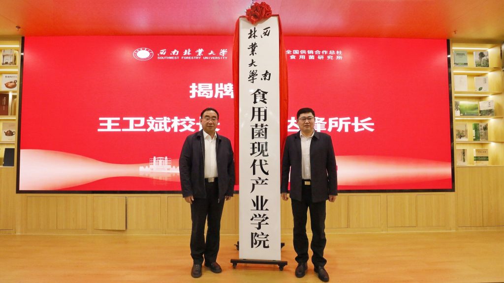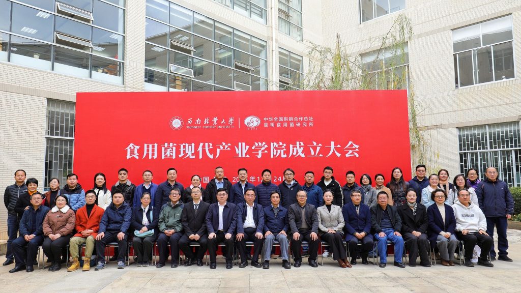 12月24日,suncitygroup太阳集团网站食用菌现代产业学院成立大会在学校世界茶叶图书馆举行。董事长王卫斌,副董事长杨思林,中华全国供销合作总社昆明食用菌研究所所长孙达锋、副所长华蓉,云南省林业和草原科学院教授杨宇明,云南省农业科学院生物技术与种质资源研究所研究员赵永昌,中国科学院昆明植物研究所研究员于富强出席成立大会。会议由学校生物与食品工程学院经理罗旭主持。