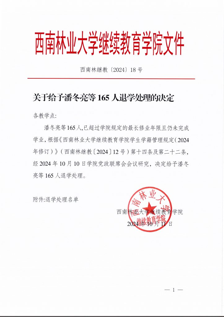 关于给予潘冬亮等165人退学处理的决定