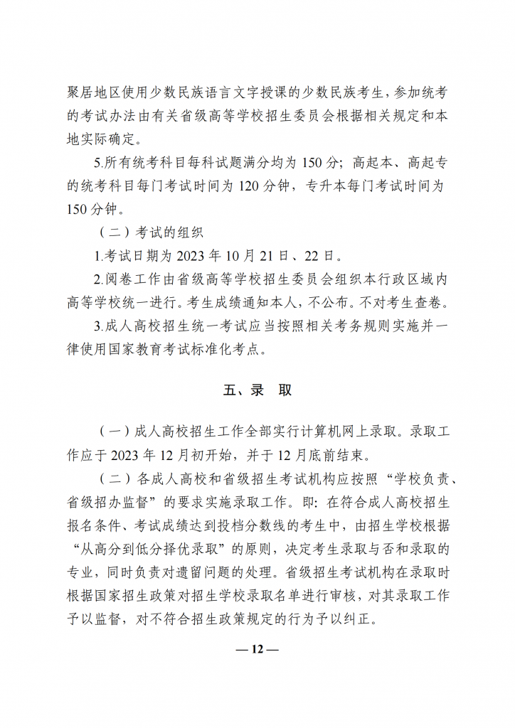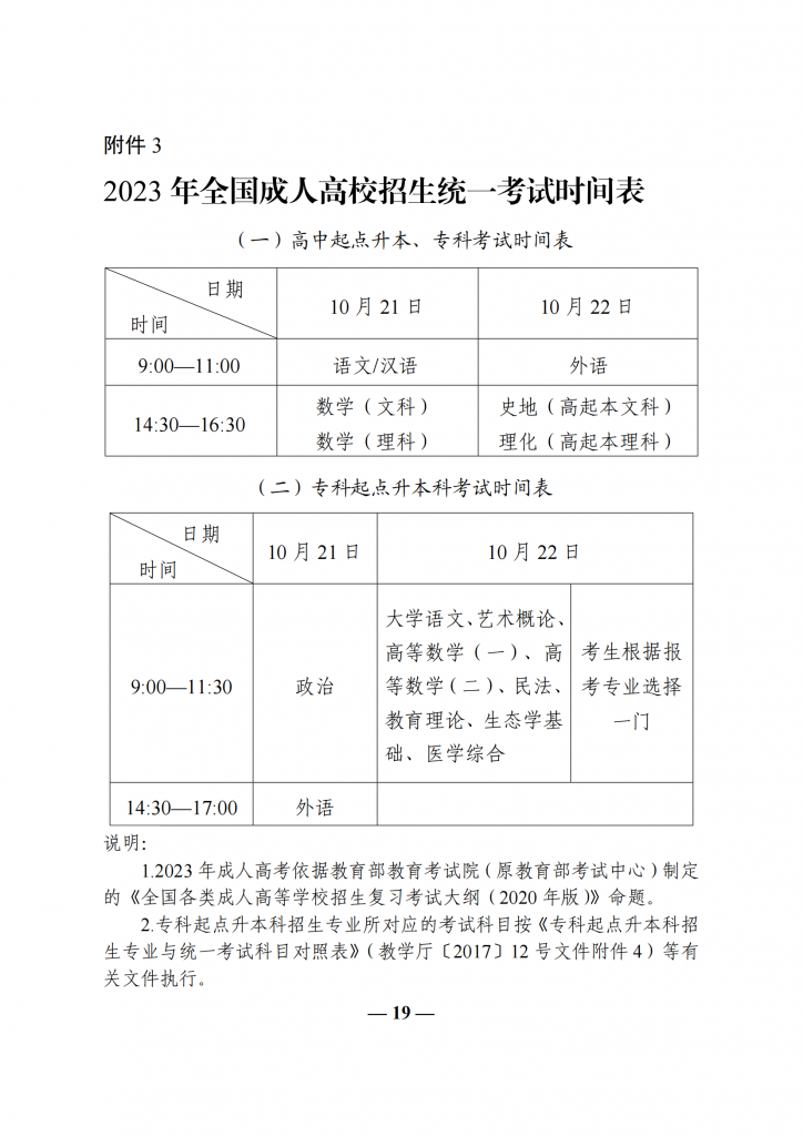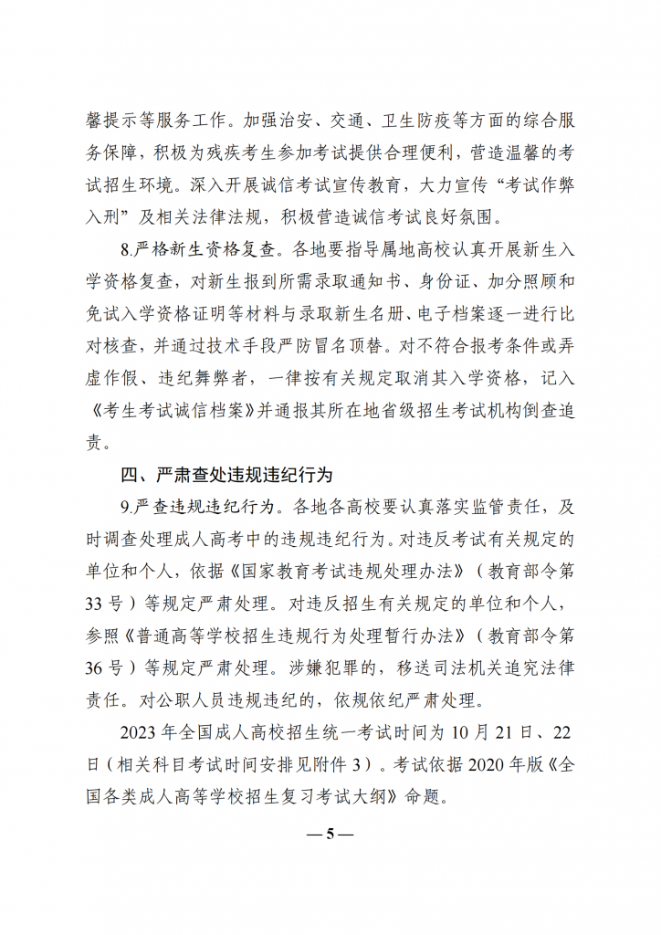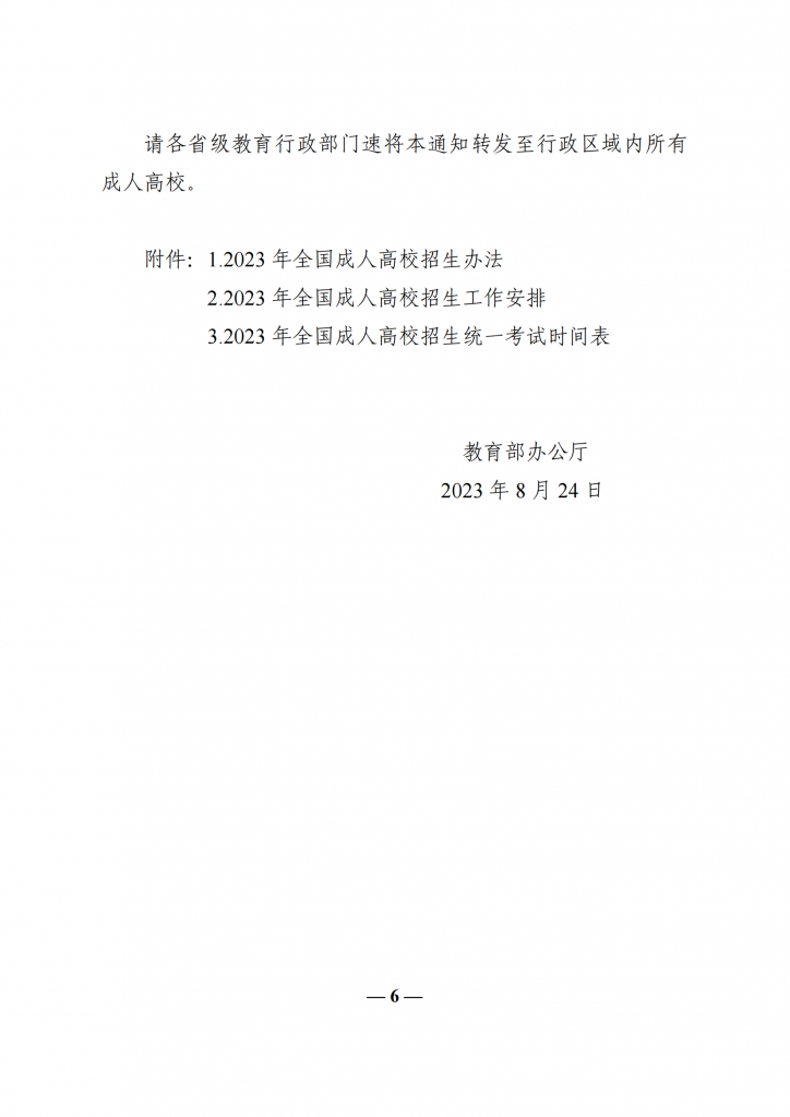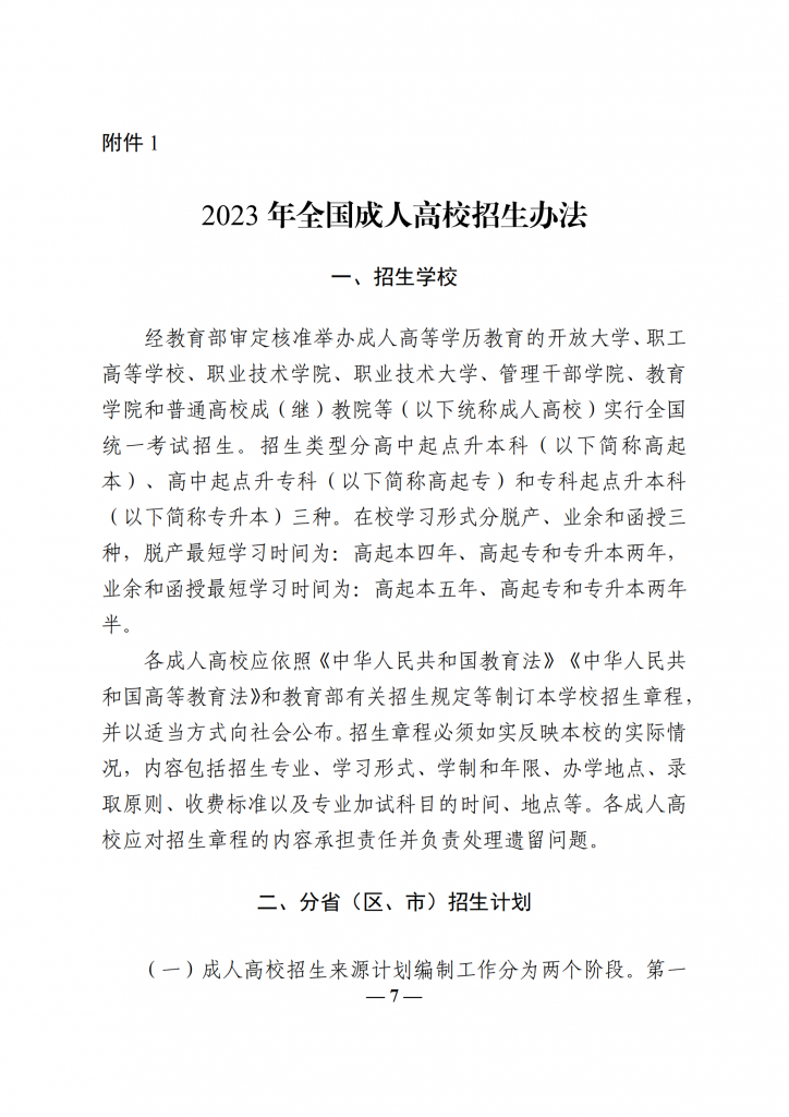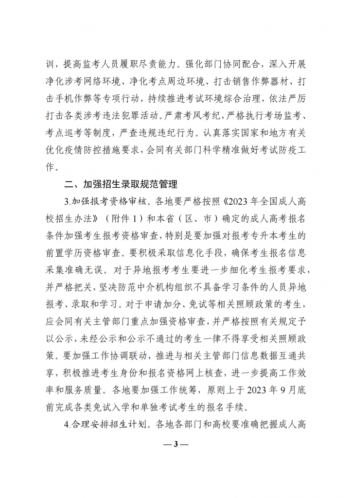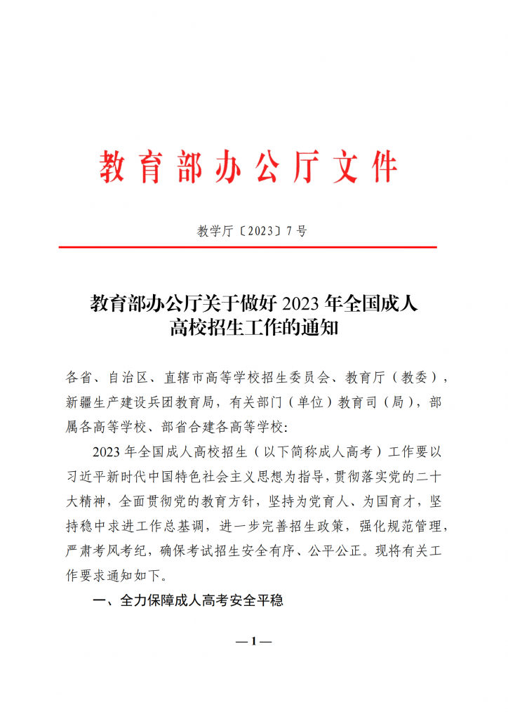 教育部办公厅关于做好 2023 年全国成人高校招生工作的通知