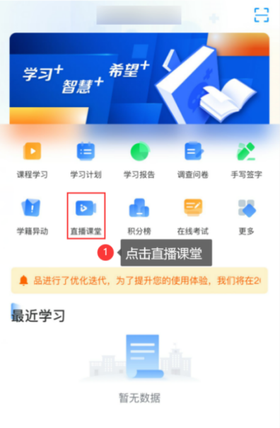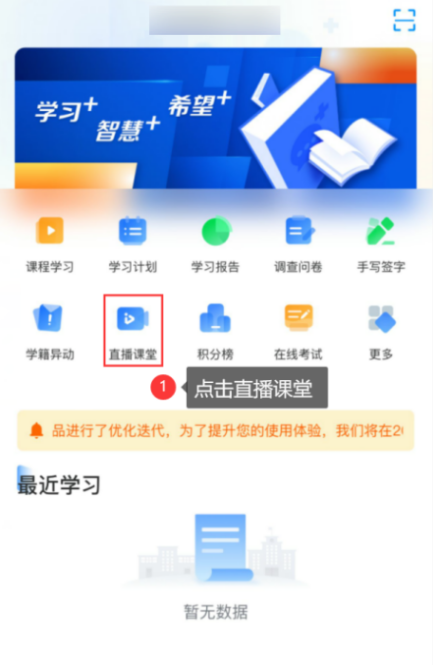 前往手机应用商场下载并打开“学起plus”APP,登录后,点击“直播课堂”模块;选择“入学教育”课程,点击“进入直播”开始上课。
