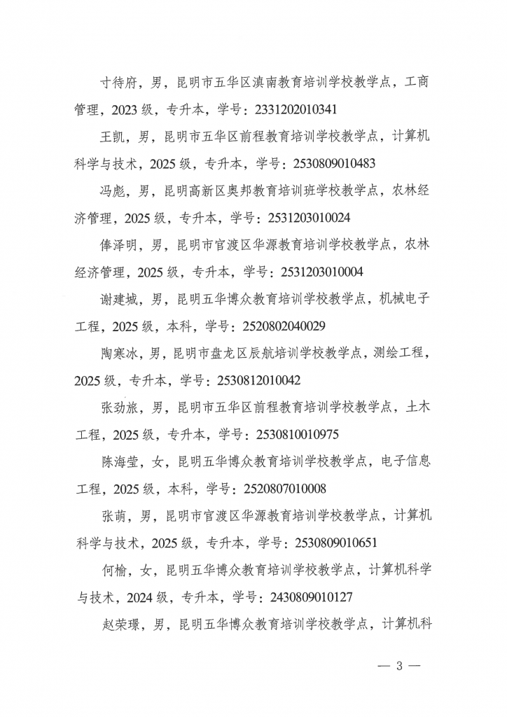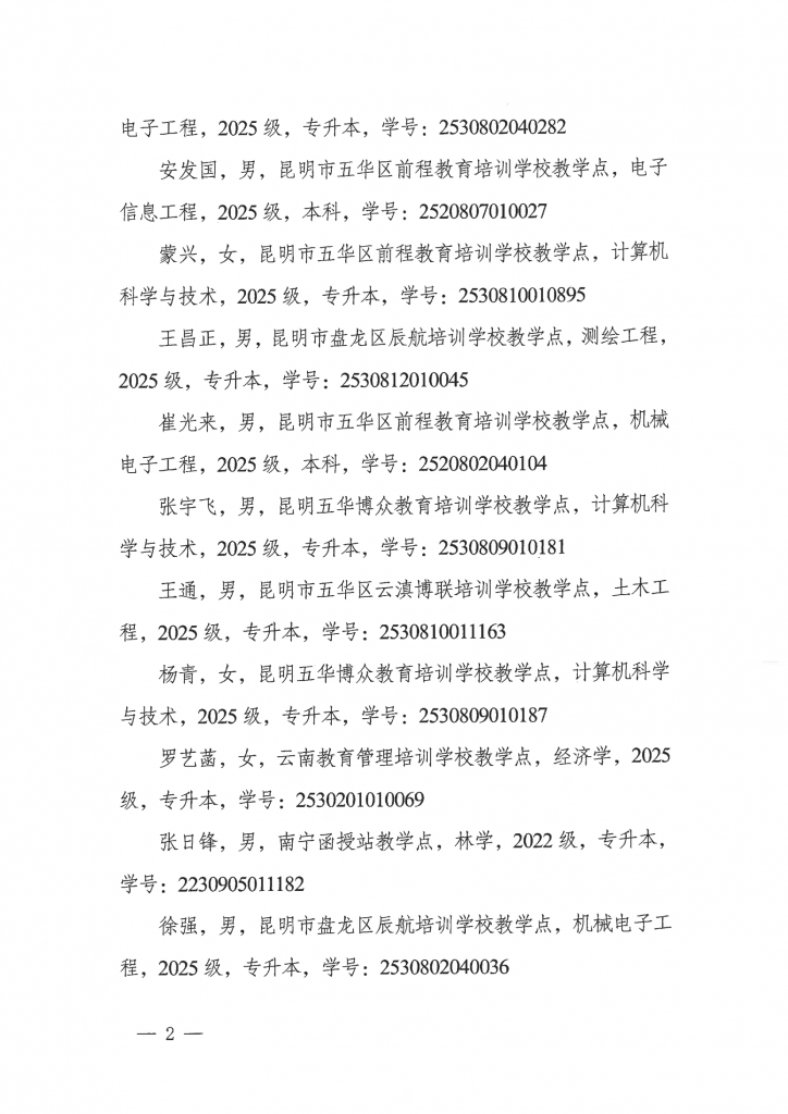 suncitygroup太阳集团网站高等学历继续教育2025年度校外教学点设置备案结果公告